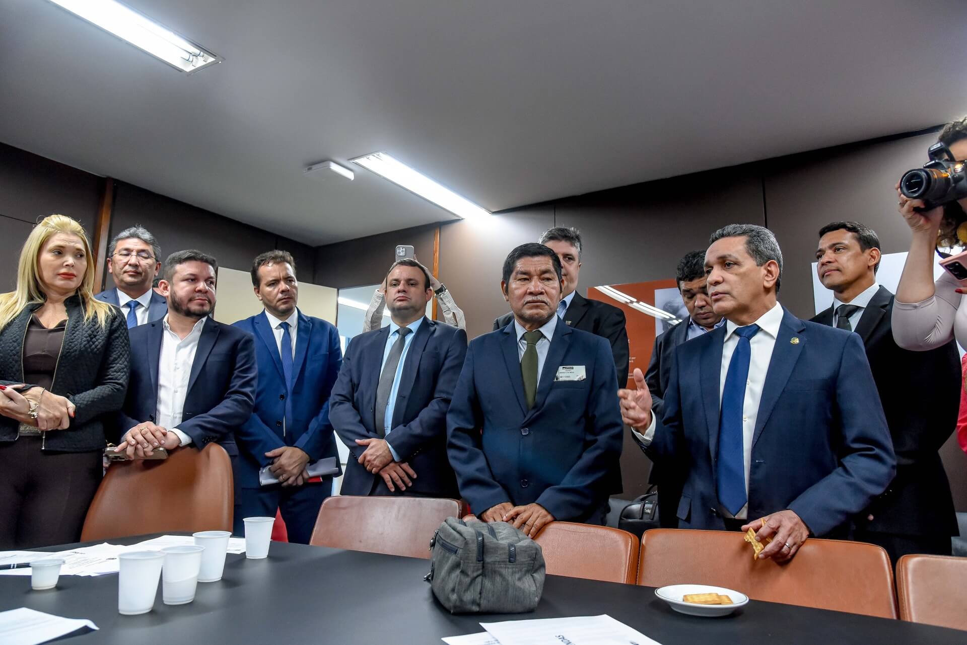 O senador Mecias de Jesus participou, nesta terça-feira (08), de reunião da bancada federal com os atuais e recém-eleitos parlamentares de Roraima, contando com a presença do governador Antonio Denarium, do vice-governador eleito, Edilson Damião e de vários prefeitos do interior do Estado.