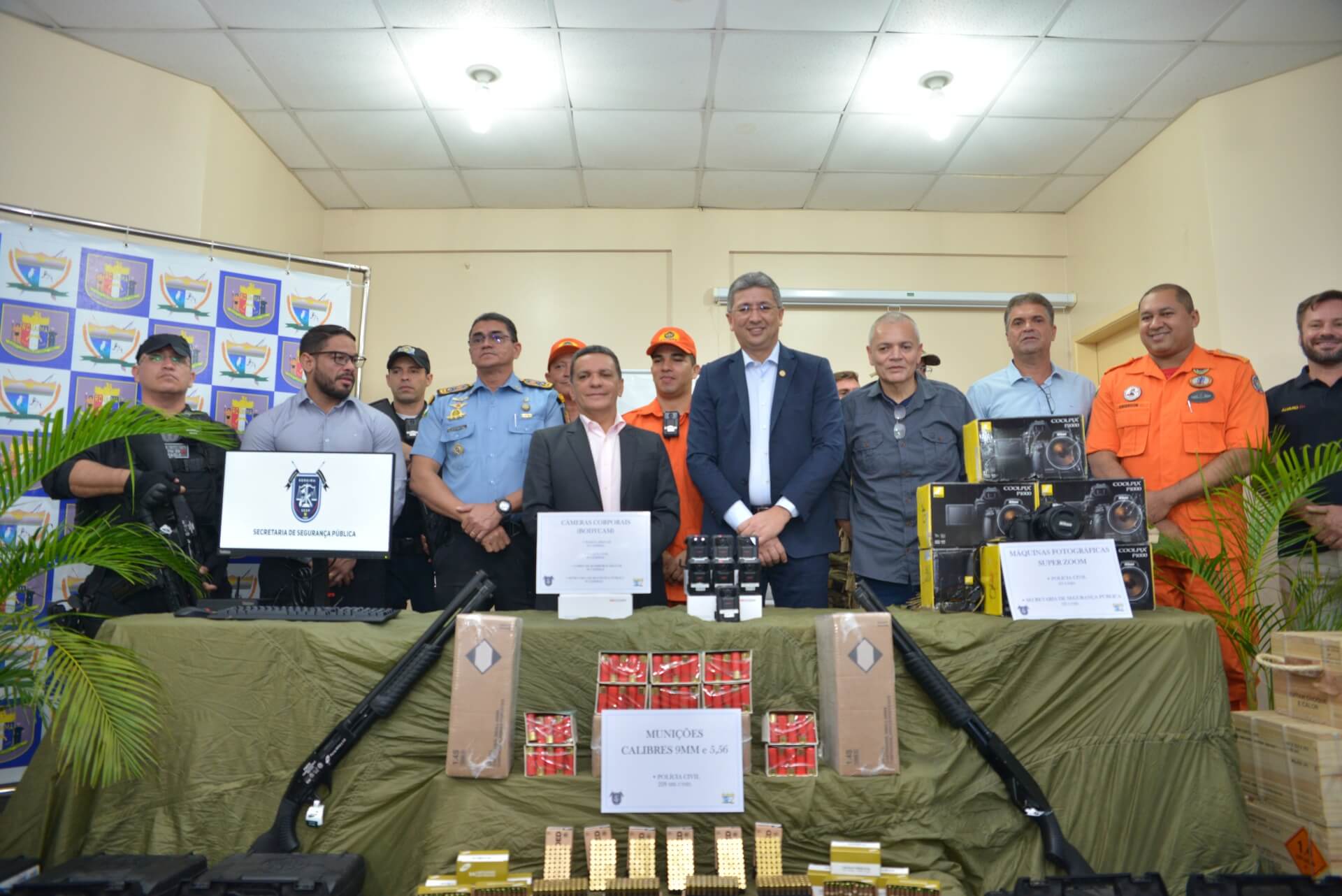 O vice-governador Edilson Damião também fez a entrega de oito kits de Body Cam, que possui “Dock Station” com capacidade para até oito câmeras em cada conjunto, que serão utilizados de forma pioneira e experimental pelas forças de segurança de Roraima. Ainda foram entregues munições e máquinas fotográficas para a Polícia Civil e a Secretaria de Segurança. “Nunca na história de Roraima se investiu tanto em segurança. Estamos fazendo história por nos preocupar com nossas instituições, nossos bravos homens, nossas mulheres, que garantem nossa tranquilidade. O programa Polícia na Rua não investiu só em viaturas, mas também em pessoas. E esses investimentos se consagram aqui agora com equipamentos que protegem esses homens e mulheres e nós vamos continuar investindo em segurança pública”, garantiu.